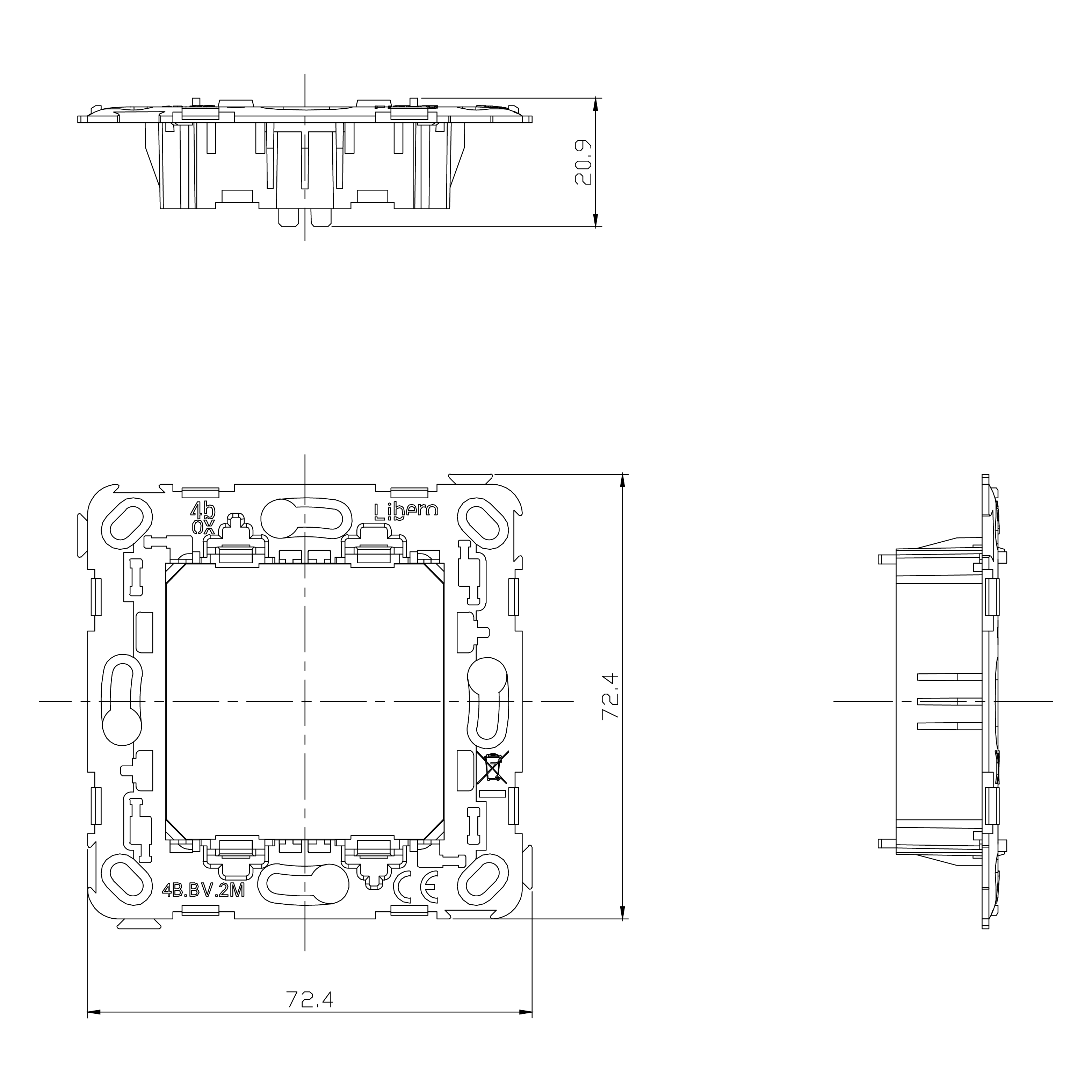 Frame multiserie 2 modules that allows you to install modules, functions, and Cover Plates from major civil series manufacturers