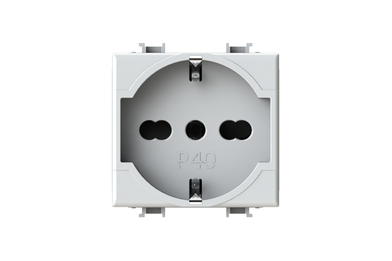 Electrical socket 2 modules – 1 Schuko or 1 two-pin/bipasso socket; 2P+E 16 A 250 V AC; 2P+E 10 A 250 V AC