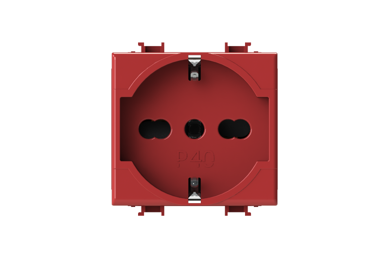 Electrical socket 2 modules – 1 Schuko or 1 two-pin/bipasso socket; 2P+E 16 A 250 V AC; 2P+E 10 A 250 V AC