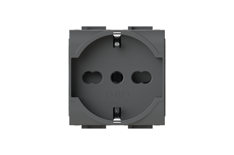 Electrical socket 2 modules – 1 Schuko or 1 two-pin/bipasso socket; 2P+E 16 A 250 V AC; 2P+E 10 A 250 V AC