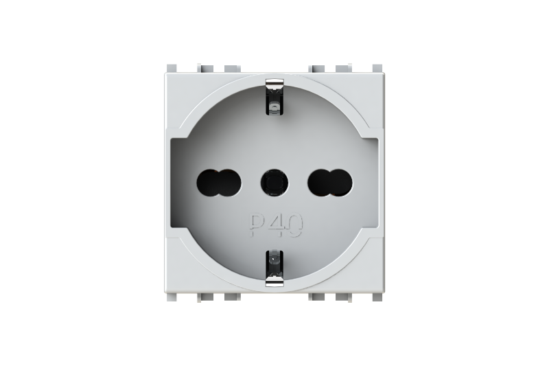 Electrical socket 2 modules – 1 Schuko or 1 two-pin/bipasso socket; 2P+E 16 A 250 V AC; 2P+E 10 A 250 V AC