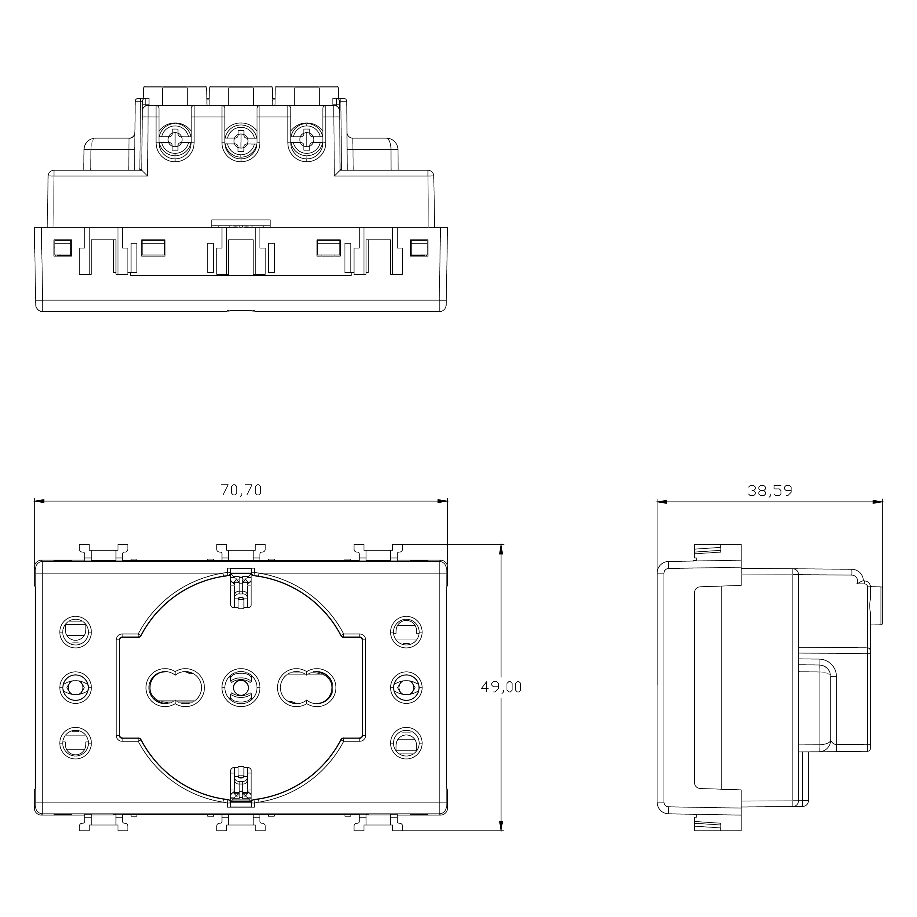 Electrical socket 3 modules – 1 P40 socket and 2 P11 sockets 2P+E 16 A 250 V AC 2x 2P+E 10 A 250 V AC