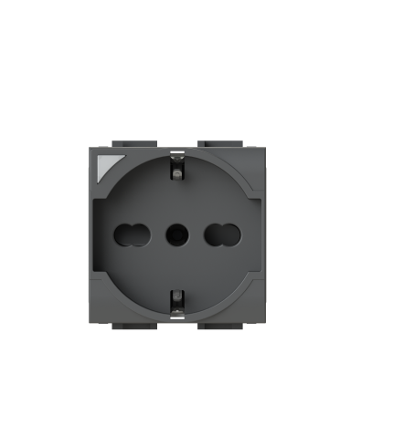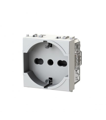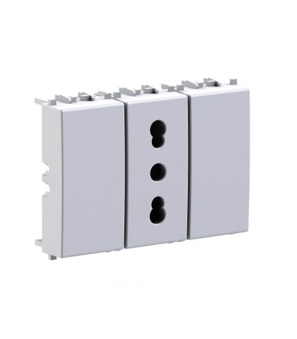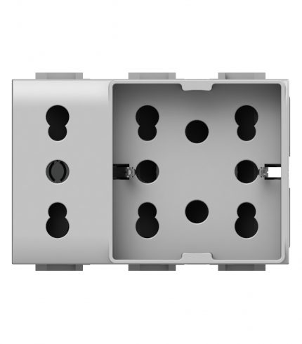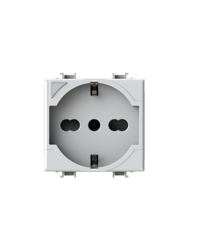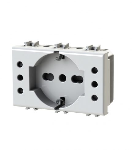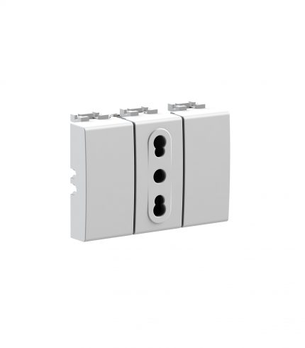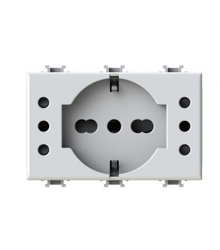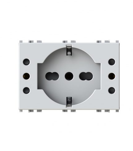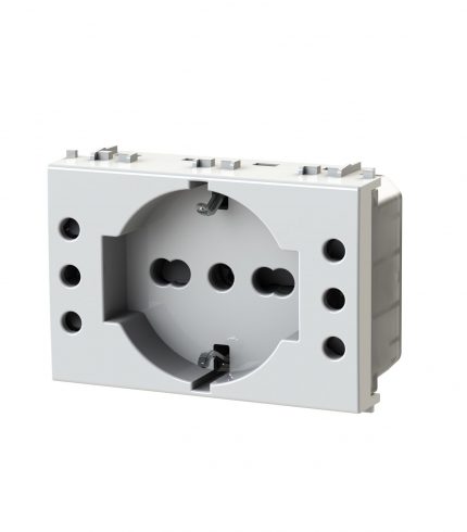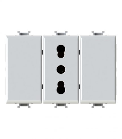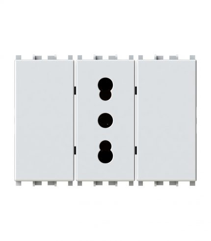 Side XL è una presa elettrica che in soli 3 moduli dispone di 1 presa schuko e 1 presa bipasso oppure di 3 prese bipasso. Alimentazione 250 V~ 50-60 Hz 16A.