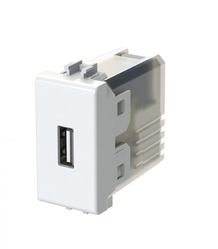 USB 2.1 è il caricatore USB per serie civile con un carico massimo in uscita di 2.1 ampere a singola uscita – USB 2.1A compatibile con Vimar® Plana™ bianca. Alimentazione 110-230 V~ 50-60 Hz.