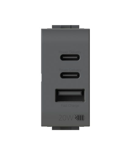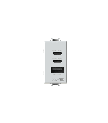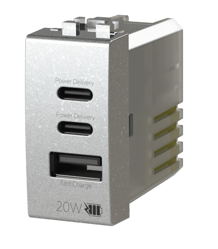 + IVALa soluzione più completa per la ricarica USB in un singolo modulo. La presa USB CCA 20W ricarica velocemente i dispositivi, è versatile e garantisce la massima sicurezza