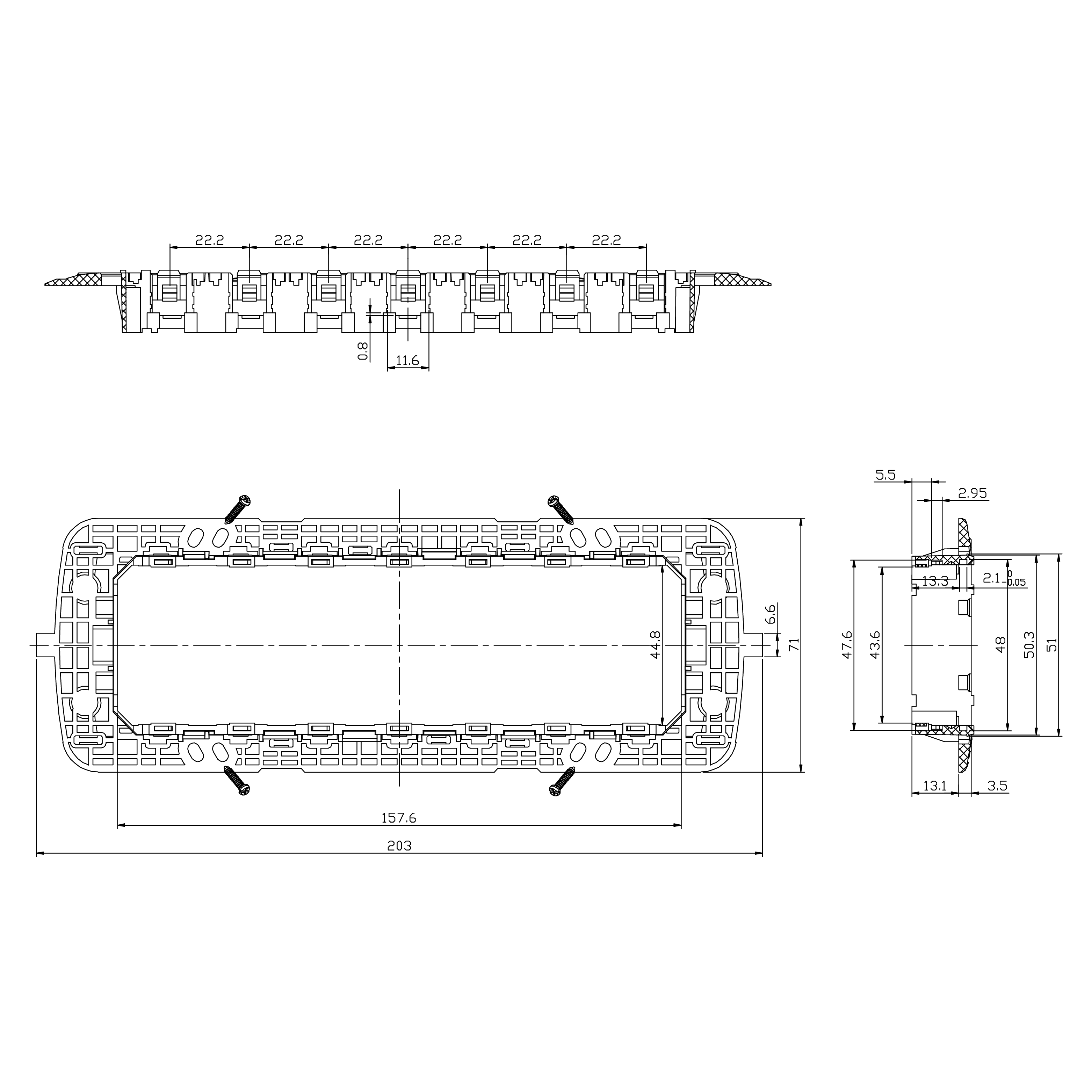 Telaio multiserie 7 moduli che ti permette di installare i frutti, le funzioni e le placche dei principali produttori di serie civili