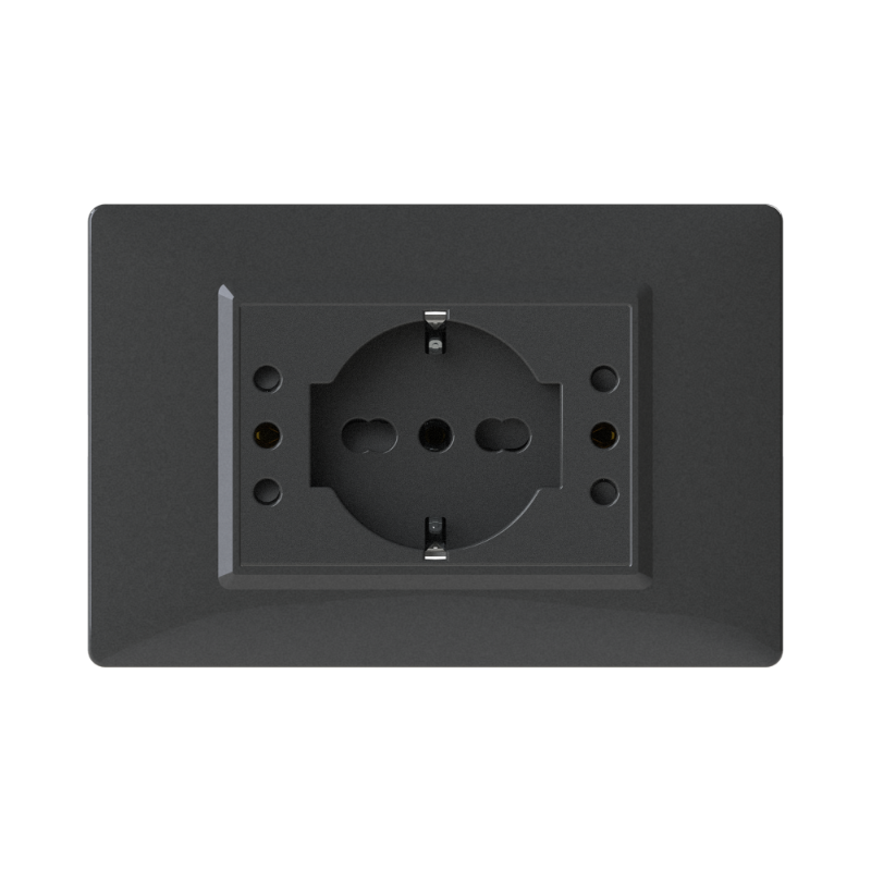 Kit 3 moduli – completo di Presa elettrica P503, Placca in tecnopolimero e telaio Libero