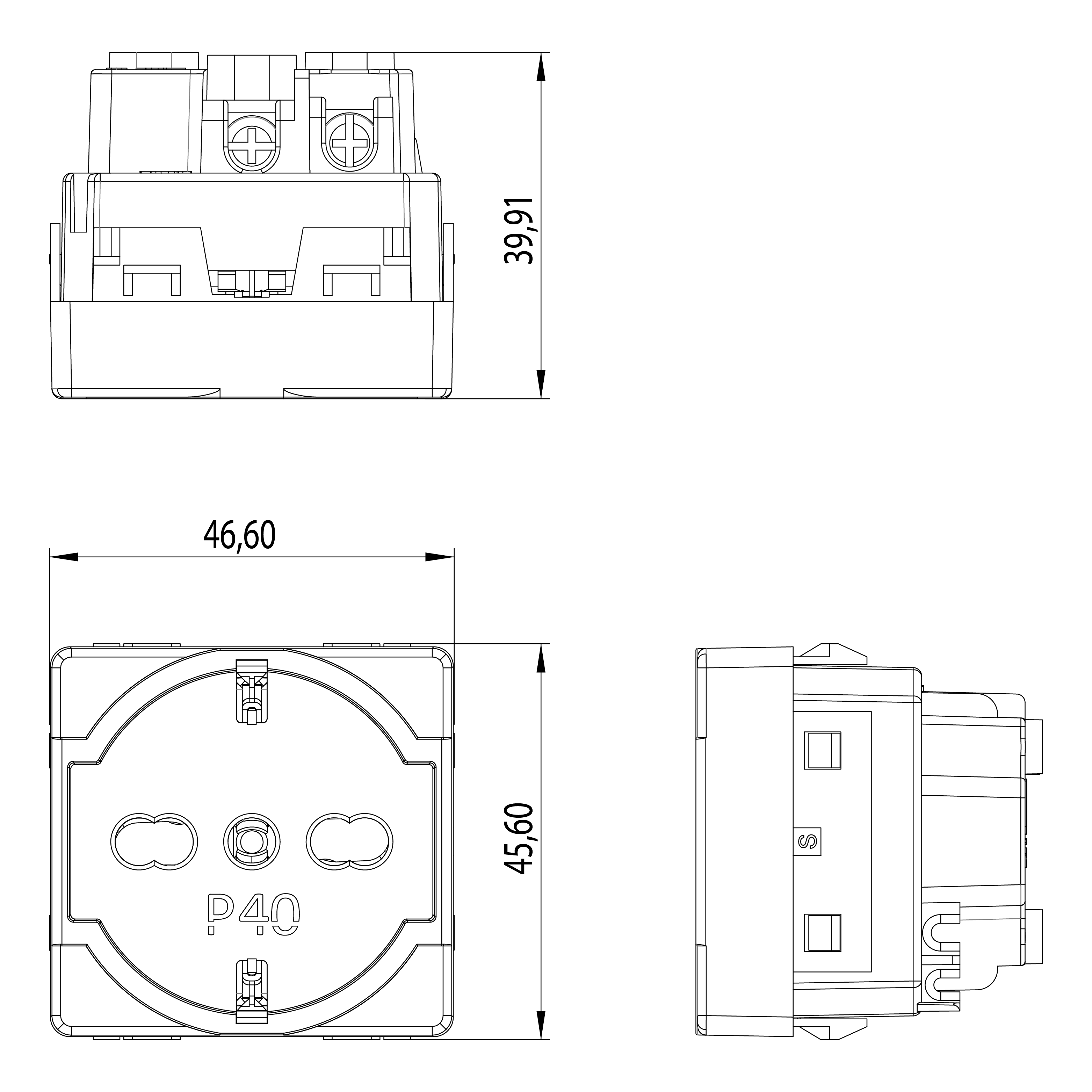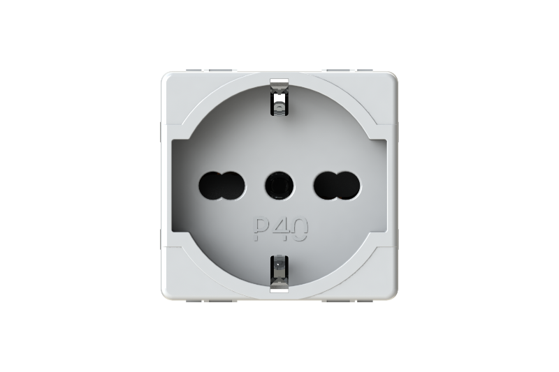 P40 è esteticamente simile alla serie civile con cui è compatibile per finitura e colore. Questo la rende una valida alternativa alle tradizionali prese in commercio.