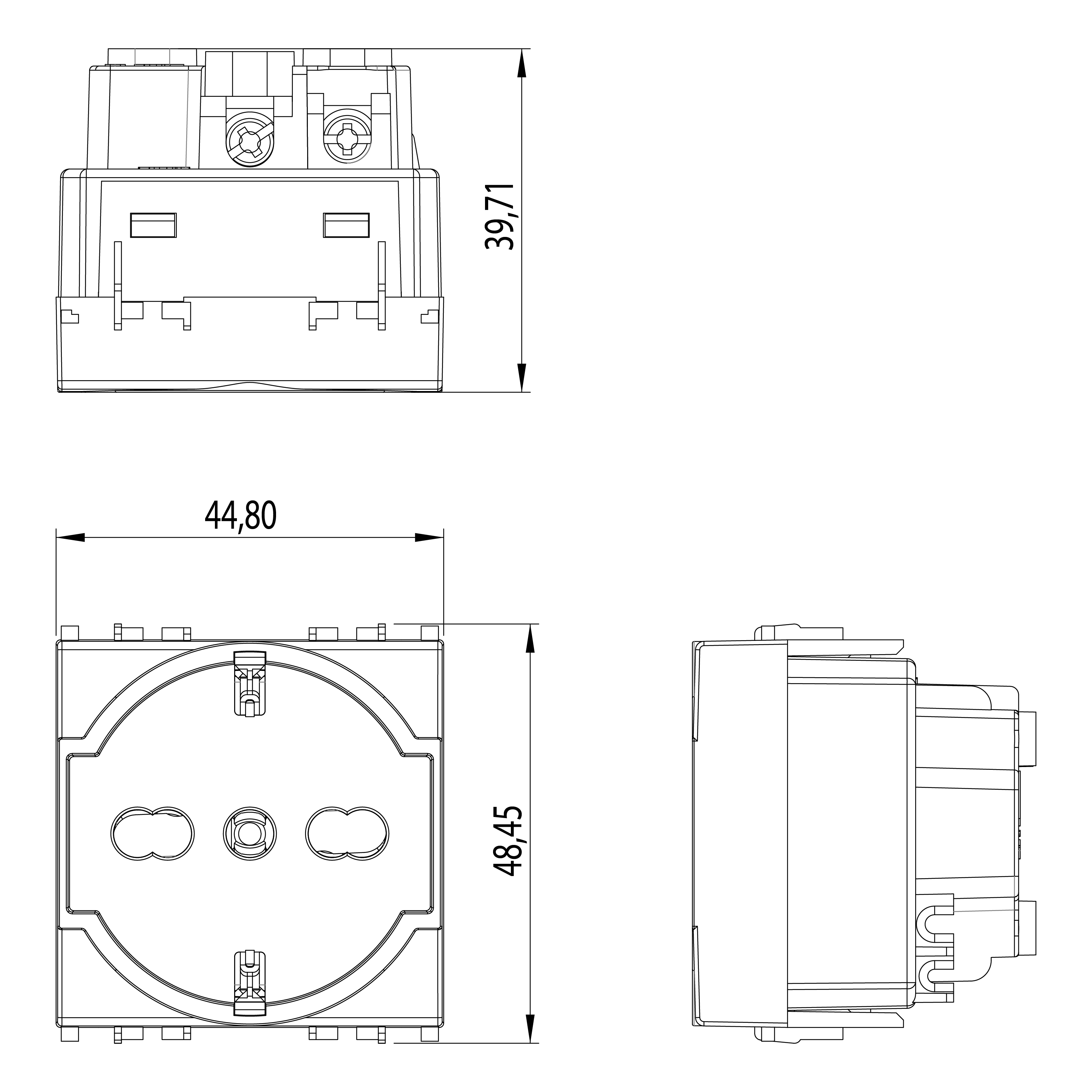 Presa elettrica 2 moduli – 1 schuko o 1 bipasso; 2P+T 16 A 250 V AC; 2P+T 10 A 250 V AC