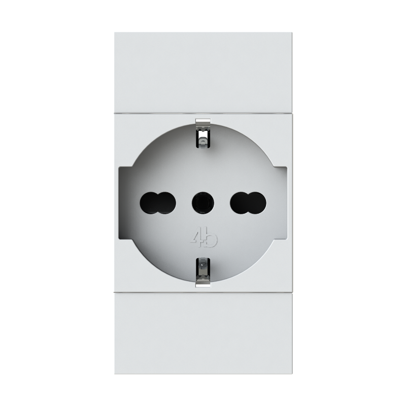 Presa elettrica 2 moduli – 1 schuko o 1 bipasso; 2P+T 16 A 250 V AC; 2P+T 10 A 250 V AC