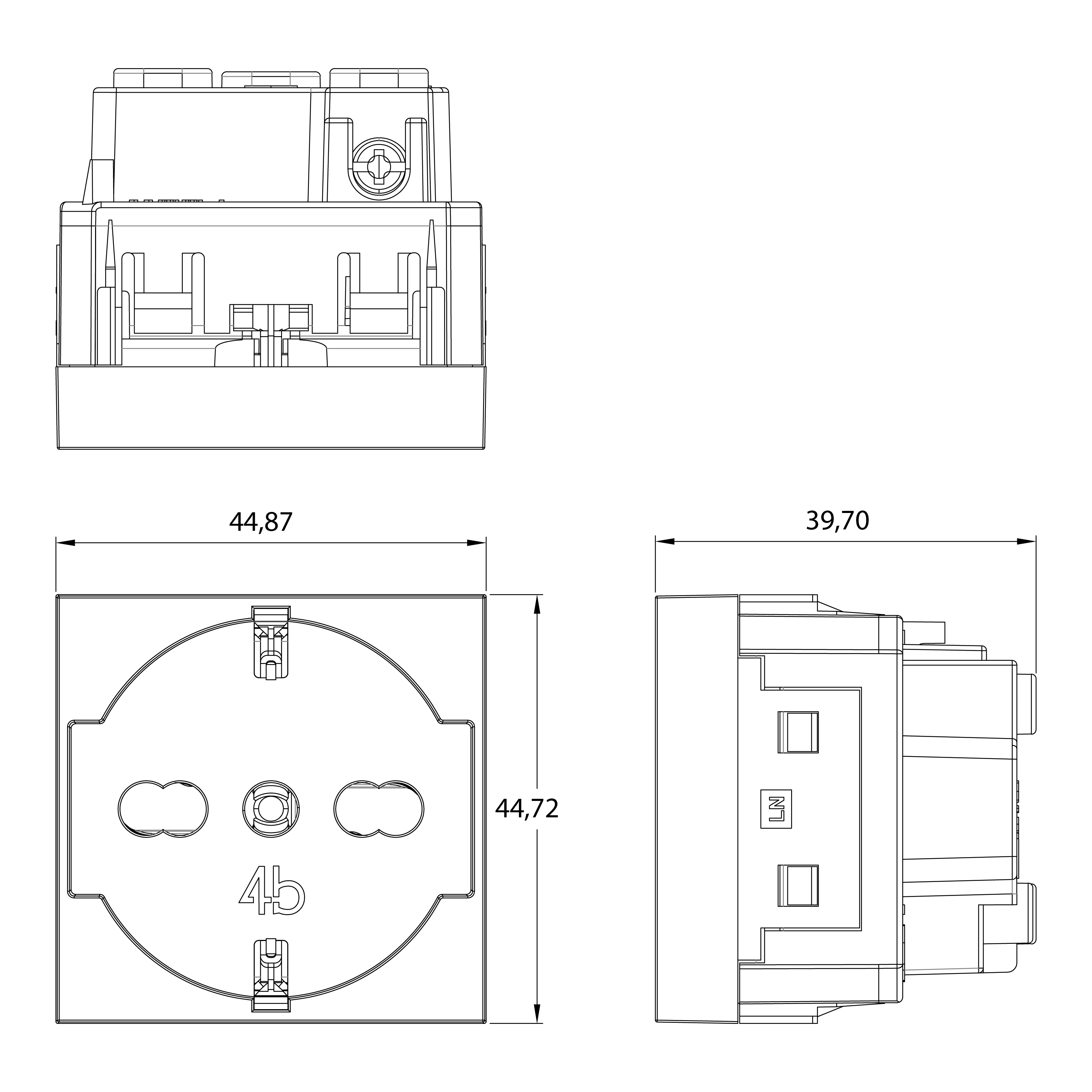 P40 è esteticamente simile alla serie civile con cui è compatibile per finitura e colore. Questo la rende una valida alternativa alle tradizionali prese in commercio.