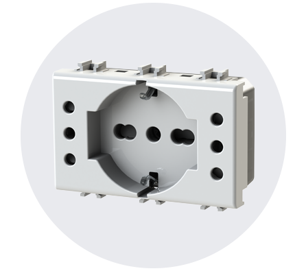P503 è esteticamente simile alla serie civile con cui è compatibile per finitura e colore. Questo la rende una valida alternativa alle tradizionali prese in commercio.