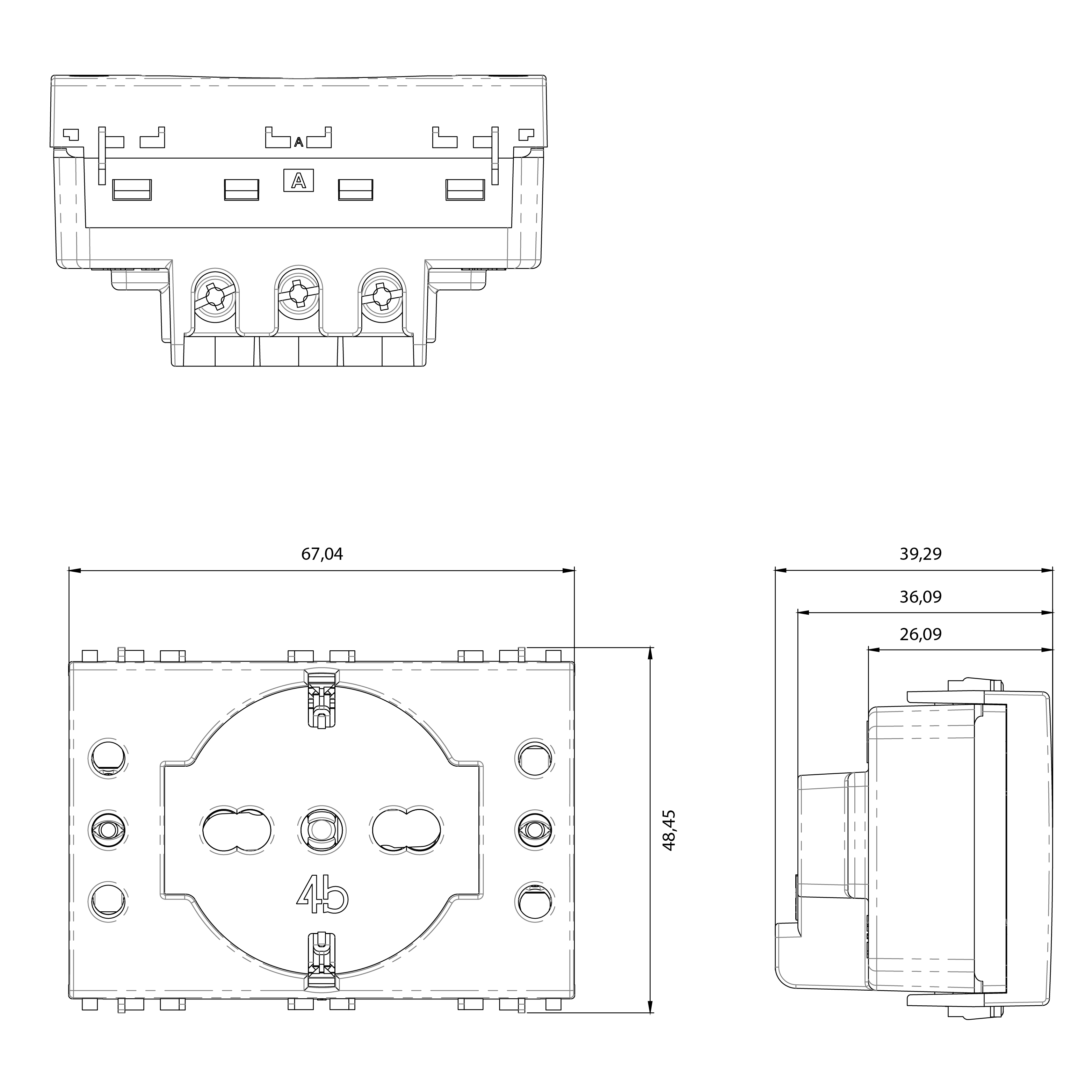 Presa elettrica 3 moduli – 1 presa P40 e 2 prese P11 2P+T 16 A 250 V AC 2x 2P+T 10 A 250 V AC