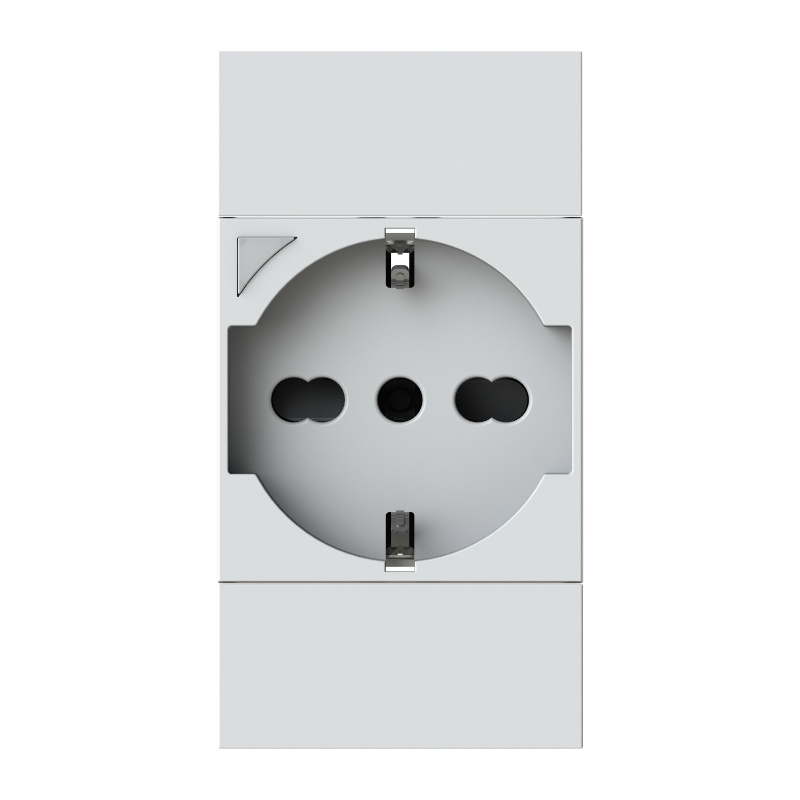 Presa smart 2 moduli Wi-Fi. Dotata di un relè da 16 A consente di visualizzare il consumo direttamente dal LED RGB posto sul fronte. Dotata anche di protezione termica che interviene istantaneamente in caso di pericolo spegnendo il dispositivo.