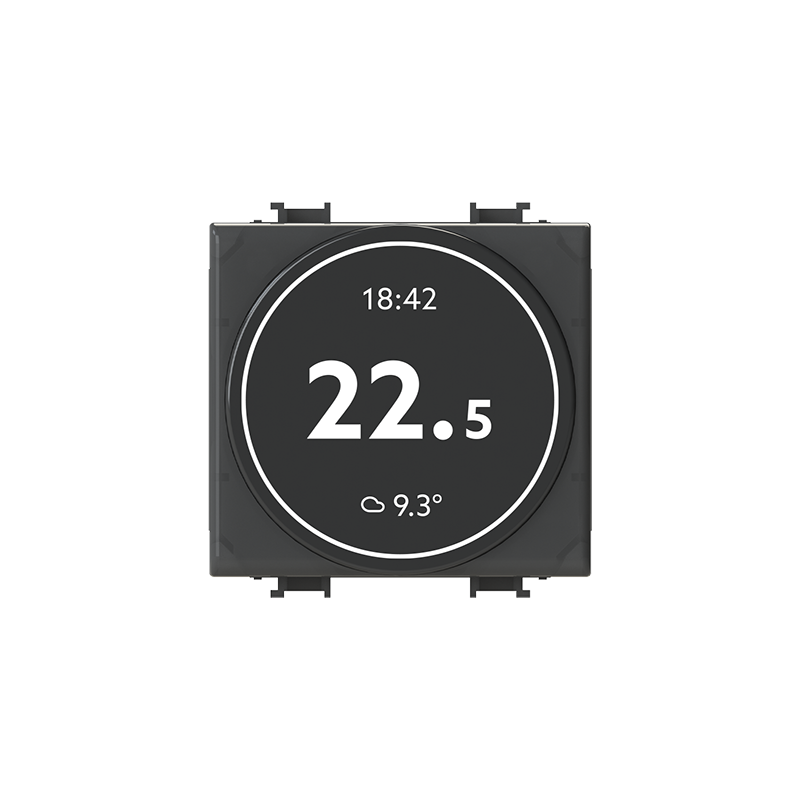 Cronotermostato Wi-Fi smart da incasso 2 moduli con display OLED – Pannello di controllo per la smart home. Permette di richiamare routine preimpostate – Funziona come stazione meteorologica da parete