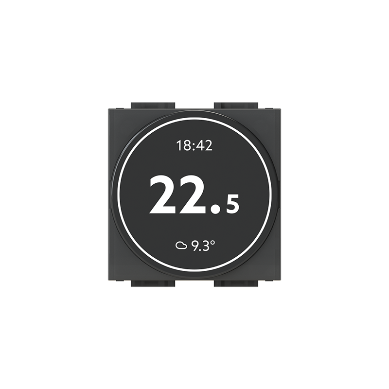 Cronotermostato Wi-Fi smart da incasso 2 moduli con display OLED – Pannello di controllo per la smart home. Permette di richiamare routine preimpostate – Funziona come stazione meteorologica da parete