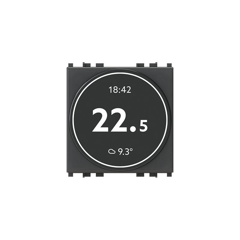 Cronotermostato Wi-Fi smart da incasso 2 moduli con display OLED – Pannello di controllo per la smart home. Permette di richiamare routine preimpostate – Funziona come stazione meteorologica da parete