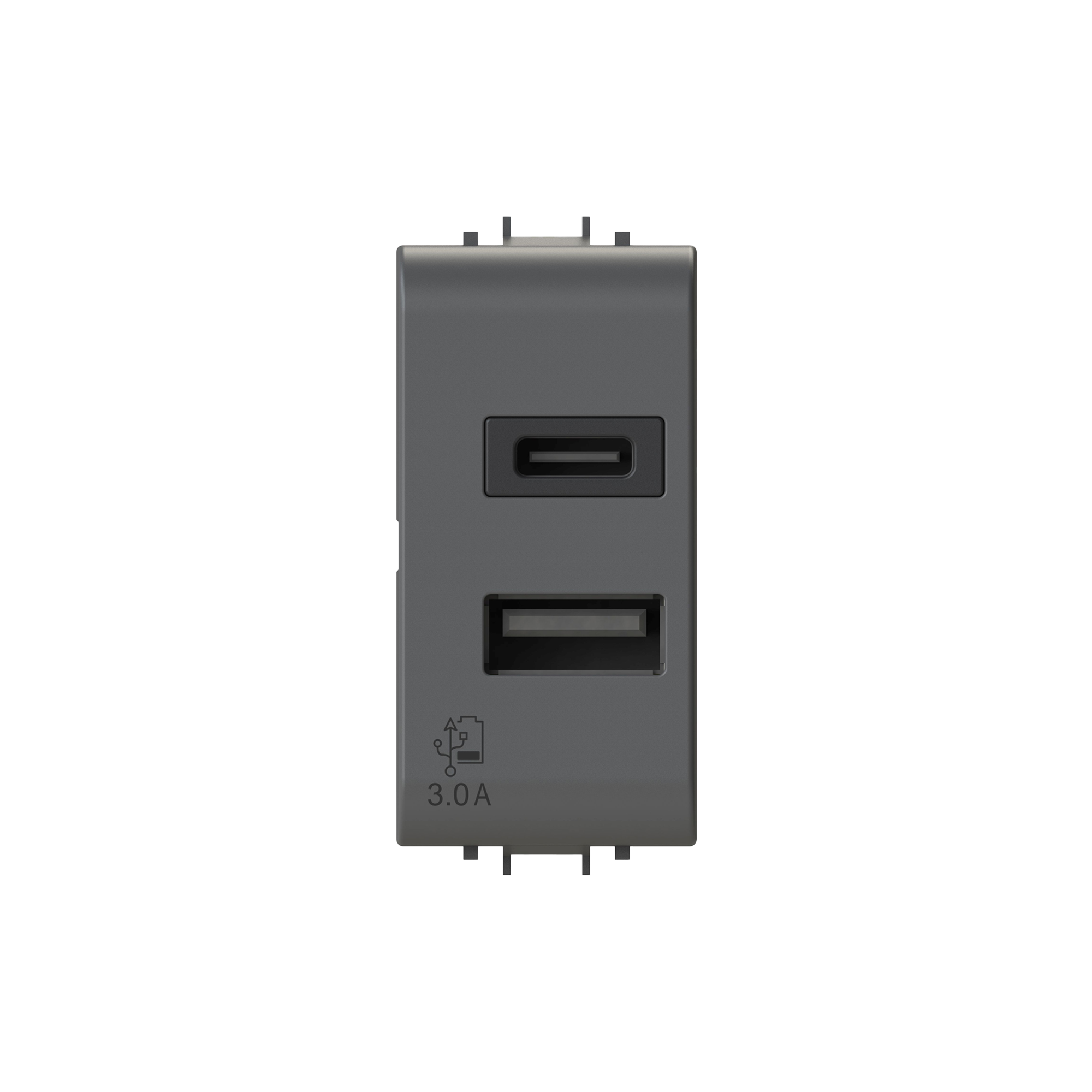 Alimentatore da incasso USB 3.0 1 modulo – 100-230 V AC 50/60 Hz; 2 uscite di tipo C+A, 5 V DC 3.0 A