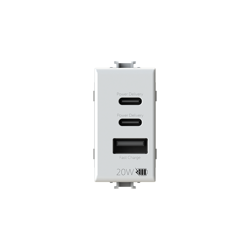 Alimentatore USB da incasso – 1 modulo – Power Delivery 20 W 3 uscite di tipo C+C+A