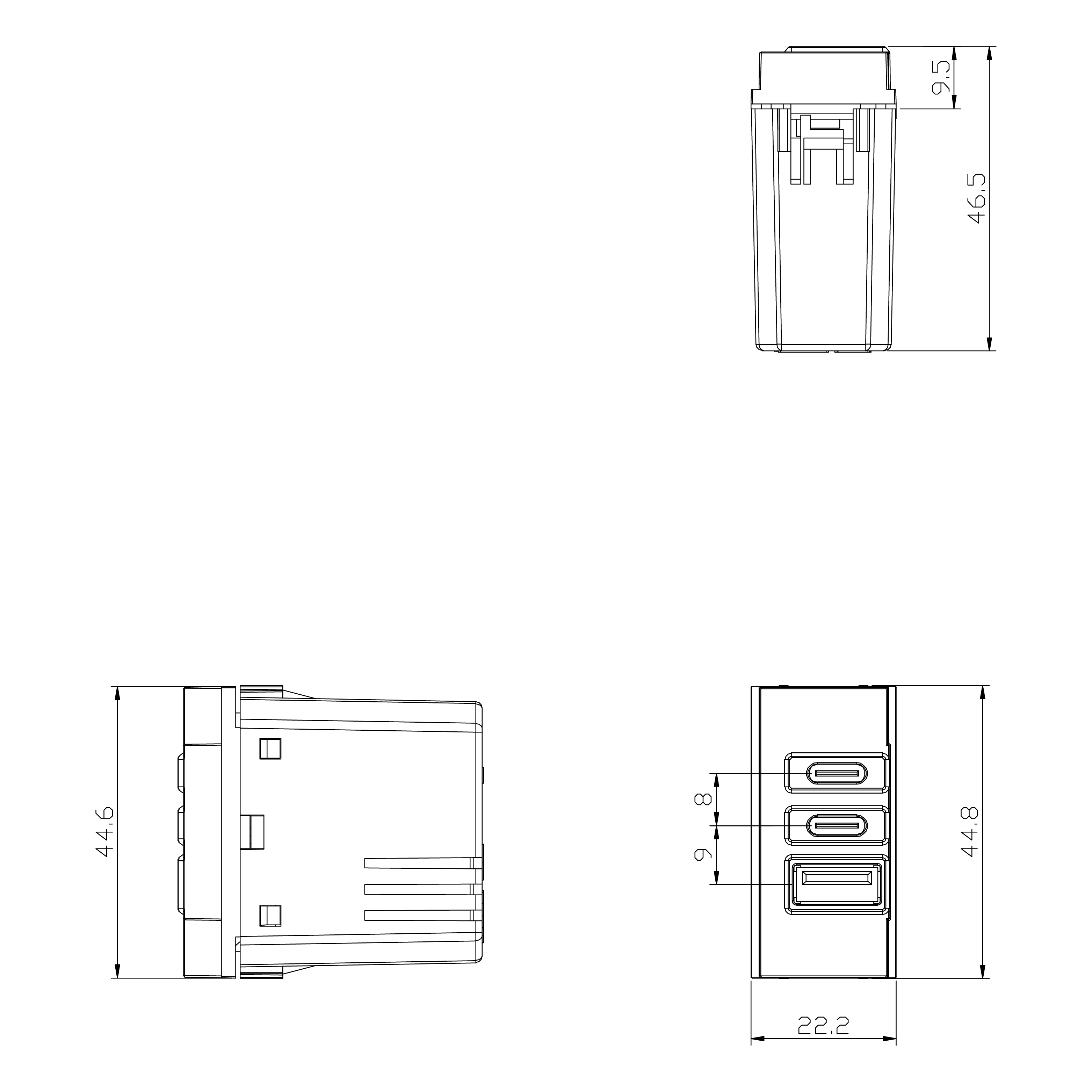 Alimentatore USB da incasso – 1 modulo – Power Delivery 20 W 3 uscite di tipo C+C+A